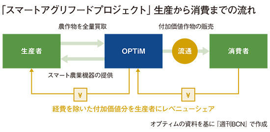 「スマート農業」の普及に向け、オプティムは、プロジェクトの立ち上げやアライアンス強化を進めている。生産者に対して製品やサービスを無償で提供しているほか、生産者と消費者をつなぐビジネスモデルを構築して「稼げる農業」の実現を目指している。