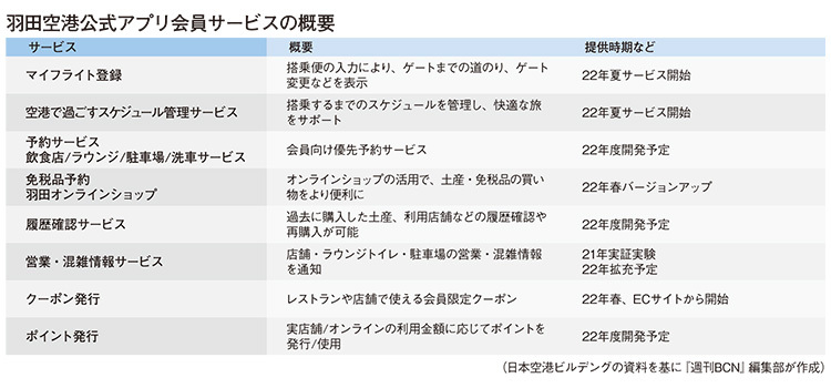 具体的なサービスとしては、会員向けにバージョンアップしたオンラインショップ機能と会員限定向けのクーポン発行機能を先行して提供済みだ。今夏には、自身が登録した搭乗便に合わせてターミナルや保安検査場、搭乗ゲートなどの情報を提示する機能や、顧客ごとのニーズに合わせた搭乗時間までの過ごし方の提案機能もリリースする。さらに23年3月期中には、飲食店やラウンジなどの優先予約サービス、IoTを活用した店舗や各施設の混雑情報通知サービス、オンラインショップと店舗の両方で使えるポイントサービスなどの実装も予定している。