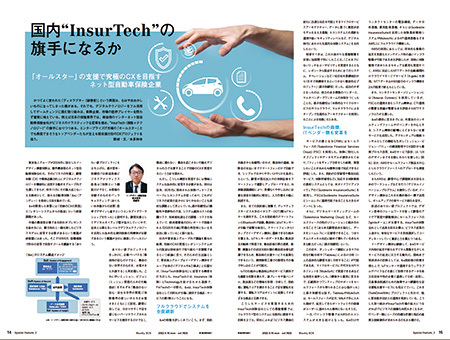 5月16日・1922号の「国内“InsurTech”の旗手になるか 『オールスター』の支援で究極のCXを目指すネット型自動車保険企業」では、イーデザイン損害保険がフルクラウドでシステムを全面刷新し、新たな形の保険商品を生み出すプロジェクトを報じた。