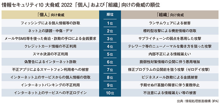 2022年も半年あまりが経過したが、例年と変わらずサイバー攻撃が猛威を振るっている。ランサムウェア攻撃により病院が業務を停止したり、関連会社がサイバー攻撃を受けたことで大手自動車メーカーの工場の稼働が停止したりと、社会的にインパクトが強い事件も発生した。情報処理推進機構(IPA)が1月に発表した「情報セキュリティ10大脅威 2022」の組織編を参考にしながら、今年上期に起きたセキュリティ事件や攻撃の傾向などを振り返る。