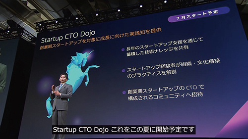 さらに今月、創業期の技術責任者を支援する国内向けのプログラム「Startup CTO Dojo」を開始する。これは、AWSに在籍する起業経験者やCTO経験者が、技術的な知識に加えて、採用や企業文化の形成といった「非技術」領域に関しても実践的な知識を提供するもの。