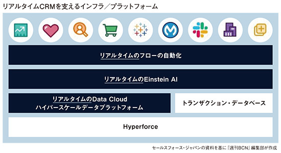 Data Cloudはセールスフォース製品のトランザクションデータと連携しつつ、18年に買収した米MuleSoft(ミュールソフト)のiPaaS/APIマネジメント製品などを活用してセールスフォース以外のシステムとも広く連携できる仕組みを備えている。