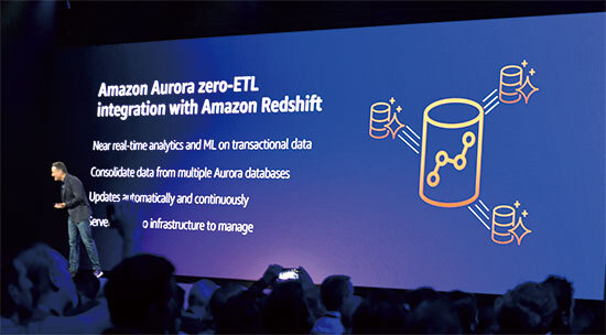 クラウドの普及にともなっていくつもの課題が浮き彫りになってきたETLに対し、米Amazon Web Services(アマゾン・ウェブ・サービス、AWS)のアダム・セリプスキーCEOは2022年11月、年次カンファレンス「AWS re:Invent 2022」の基調講演において「ゼロETLという未来(A Zero ETL future)」というコンセプトを打ち出し、データプラットフォーム業界に強いインパクトを与えた。また、ほぼ同時期に米Databricks(データブリックス)や米Snowflake(スノーフレイク)といったクラウドネイティブなデータプラットフォームベンダーが、基幹システムであるOLTPと分析システムであるOLAPの統合、あるいはデータレイクとDWHの統合といったアプローチを打ち出しており、筆者はこのころからゼロETLというキーワードを見かける機会が増えたように記憶している。