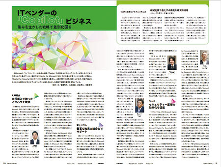 ITベンダーの『Copilot』ビジネス 強みを生かした戦略で差別化図る 」では、米Microsoft(マイクロソフト)の生成AI機能「Copilot」の利用拡大に向けた、大塚商会、富士ソフトの「Copilot for Microsoft 365」導入支援サービス、ラックの「Copilot for Security」向けサービスを取り上げた。