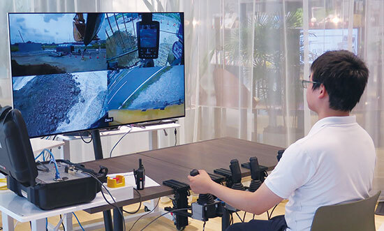 説明会では、東京・大手町のNTTコム本社から、千葉県柏市に置かれた無人のショベルカーを動かすデモストレーションが披露された。オフィスで操作する人は画面を見ながら土を掘削したり、掘った土をトラックに積み込んだりし、遅延なく作業できることを示した。