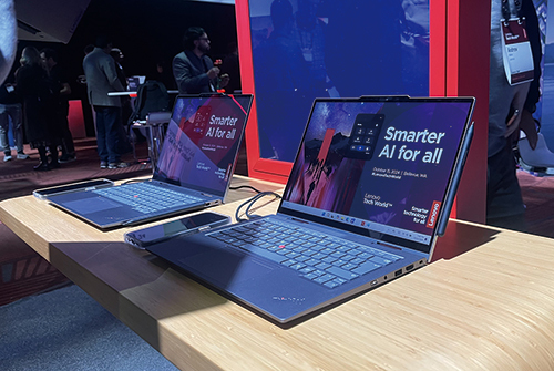 イベント会場には、AI駆動の機能を統合したハイブリッドワーク向けの最新AI PC「ThinkPad X1 2-in-1 Gen 10 Aura Edition AI」が展示され、来場者の関心を集めていた。