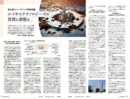 毎号、旬のトレンドにフォーカスする「Special Feature」。Webサイト「週刊BCN+」に掲載された同コーナーの記事中、今年最も多くアクセスされたのは、富士通が4月1日付で発足させた、x86サーバーやストレージなどハードウェアの専業会社・エフサステクノロジーズに関する記事。富士通がハードウェア事業を別会社として切り出す狙いを考察した。2位の特集では、複合機ベンダーの富士フイルムビジネスイノベーション、リコー、キヤノンマーケティングジャパンが提供するITソリューションについて、その特徴や販売戦略について追った。