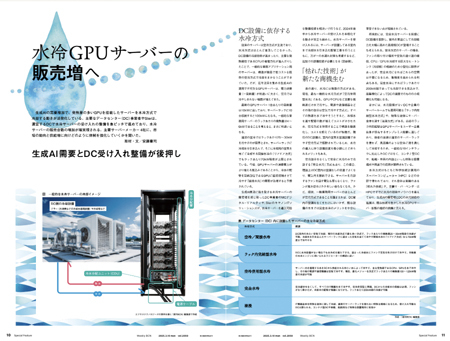 25年は生成AIのビジネス実装が進むとみられている。生成AIに欠かせないのがGPUを搭載したサーバーだが、高性能になるほど課題となるのが、GPUが発する大量の熱をどう処理するかという問題だ。3月10日・2050号の「水冷GPUサーバーの販売増へ 生成AI需要とDC受け入れ整備が後押し」では、主要サーバーメーカーが、発熱量の多いGPUサーバーを冷却効率が高い水冷方式を採用することで効率良く冷やし、高まる生成AI需要に対応する動きをまとめた。