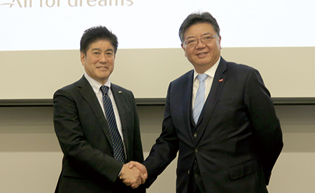 ニデックの田中裕司・執行役員(左)とLESの張磊社長