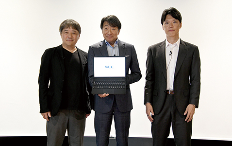 左から、NEC PCの森部浩至本部長、檜山太郎社長、飯田陽一郎執行役員