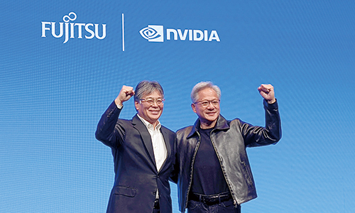 富士通は10月3日、AIエージェントを統合したフルスタックAIインフラストラクチャーの構築を目指し、米NVIDIA(エヌビディア)との戦略的協業を拡大すると発表した。富士通の時田隆仁社長CEOは、▽自律的に進化するAIプラットフォーム▽次世代コンピューティング基盤▽カスタマーエンゲージメント─の三つを構築することに重点を置き、30年までにAIインフラを社会基盤として確立することを目指す方針を示した。エコシステム拡大のため、両社共同でパートナープログラムも立ち上げる。エヌビディアのジェンスン・フアンCEOは、「AIによる産業革命はすでに始まっているが、日本における社会実装はまだ進んでいない」としながらも、「日本の才能と産業、革新の精神なら、AIで世界をリードできる」と力を込めた。26年度に開発を計画している量子コンピューターの領域でも「両社の技術を掛け合わせれば、社会への貢献が飛躍的に進むものと確信している」(時田社長)と、期待を込めた。
