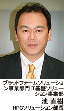 なかでも、HPC(ハイパフォーマンスコンピューティング)関連の製品・サービス提供を手がけるHPCソリューション部では、「“とんがりビジネス”を追求しています。ブレードサーバを活用したHPCソリューションも自然な流れです」と池直樹HPCソリューション部長は語る。その一例として、「c3000」をHPCクラスタシステム「RockCluster」としてパッケージ化。ほかにも、エンタープライズ分野へ仮想化ソフトに関してヴイエムウェアやシトリックスだけでなく多彩なグリッド基盤構築ができることも特徴だ。