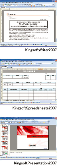 キングソフトでは、Microsoft Officeに「最大限近づけた」オフィス統合環境「KINGSOFT Office2007(キングソフトオフィス2007)」を提供している。
