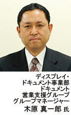 「当社はここ一年“A3カラー”に力を注いできました。その結果が、前年同期比120%以上という実績を残せたのだと思います」と、ディスプレイ・ドキュメント事業部・ドキュメント営業支援グループの木原真一郎グループマネージャーは語る。