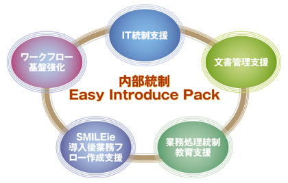 この自信の裏づけとなっているのが「内部統制Easy Introduce Pack」だ。中堅企業を対象に「内部統制の仕組みづくりをサポートするためのサービスパック」として07年6月から順次提供を開始した。今や、内部統制の強化は、非上場の中堅・中小企業においても上場企業に関連する取引先などから内部統制の整備を求められるようになる。だが、内部統制の仕組みを短期間で構築するのは容易ではない。そこで、企業の統制活動にかかわる製品と合わせて教育、設定書の作成、運用手順書・マニュアルの作成などをパック化したサービスを用意。これに従って作業を進めれば、内部統制の仕組みを短時間で効率よく整備できるという。同サービスパックは「IT統制支援」「文書管理支援」「ワークフロー基盤強化」「業務処理統制教育支援」「SMILEie導入後業務フロー作成支援」の5種類がある。年商100-500億円規模の企業なら、サービスパックの導入で短期間に内部統制対応の仕組みづくりが可能。「特に、IPO(新規株式上場)を計画している企業には最適」という。
