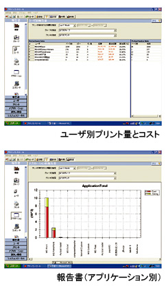 「PretonSaver」は、月別プリント量、アプリケーション別コスト、ユーザー別プリント量とコスト、プリンタ別プリント量とコスト、プリンタ/ユーザ/アプリケーション別運用管理などのレポーティング機能を有している。印刷コストの低減と印刷の「見える化」も実現しているのである。