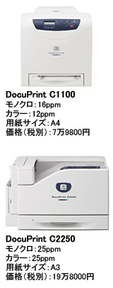 | 富士ゼロックスは07年4月、プリンタ専業の富士ゼロックスプリンティングシステムズ(FXPS)を統合、プリンタ事業の強化に乗り出した。同年にはA3タンデム機の「DocuPrint C2250」を市場に投入したが、これは統合効果の一つ。複合機と同じエンジンを搭載することで25枚/分で19万8000円という価格を実現している。実はこのプリンタは天野氏がFXPS時代に国内のA3市場向けとして企画に関わっており、高画質、安定性、各種セキュリティ機能が充実したコストパフォーマンスの高い商品だ。それだけに市場からの反応はよい。LEDやコントローラへの省エネASICの採用などで省電力化を実現し、第4回エコプロダクツ大賞も受賞した。08年度のラインアップとしてはこの「C2250」のほか、07年度の省エネ大賞(9年連続)を受賞したA4タンデム機の新製品「DocuPrint C1100」、06年度の省エネ大賞でコンパクトA3機の「DocuPrint C3050」の3機種が主力機種となる。 |