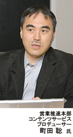 日本SGIは、従来からデジタルコンテンツを効果的に制作・表示するソフトウェア群「VizImpress」を提供。対話型リッチコンテンツ統合プラットフォームとして、タッチパネルディスプレイを使ってコンテンツそのものに触れながら操作するという、わかりやすい情報表示の方法を提案している。高速ズームやスクロール操作などのインターフェースは、テレビの情報番組などでも活用されているため、多くのユーザーにとって馴染みのある表示方法だろう。これをコアテクノロジーとし、SaaS型のサービスとして2008年2月から提供を開始しているのが、「VizPlace」だ。このサービスでは、高解像度のデータをWeb配信することにより、新しい市場の開拓を狙っている。「『VizImpress』と同様の機能を備えているため、シーン切り替えなどの多彩な映像効果を使い、静止画・動画などを組み合わせて情報を提示することができます。デジタルサイネージシステムや放送番組・イベントでの使用、対話的なプレゼンテーションの作成など、あらゆる利用シーンが想定されています」と、営業推進本部・コンテンツサービスプロデューサーの町田聡氏は語る。