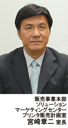 「“IPSiO SP C220”は、デザイン・サイズ・操作性が評価されています。店舗窓口など、想定していたお客様はもちろん、ディストリビュータ様をはじめとするパートナー様からも高い評価をいただいています」と、販売事業本部・ソリューションマーケティングセンター・プリンタ販売計画室の宮崎章二室長は語る。
