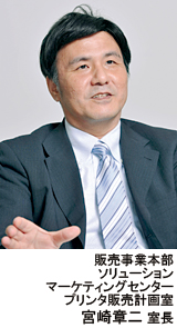 リコーは、プリンティングについて「ソリューション」と「コモディティ」に二分し、それぞれの市場に適した展開を行ってきた。「ソリューション」については「オフィス系」と「業種業務系」に分け、それぞれの用途に応じて適切な製品・サービスを提供している。リコーの戦略を販売事業本部・ソリューションマーケティングセンター・プリンタ販売計画室の宮崎章二室長に聞いた。良質のソリューションを提供すべくサポートプログラムを充実