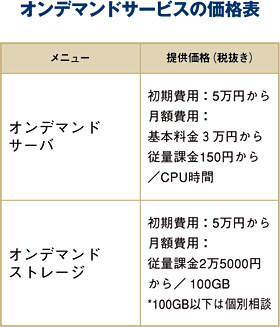 フルアウトソーシングで顧客企業を支援する オンデマンドサービスのサービスメニューは「オンデマンドサーバ」と「オンデマンドストレージ」からなる。