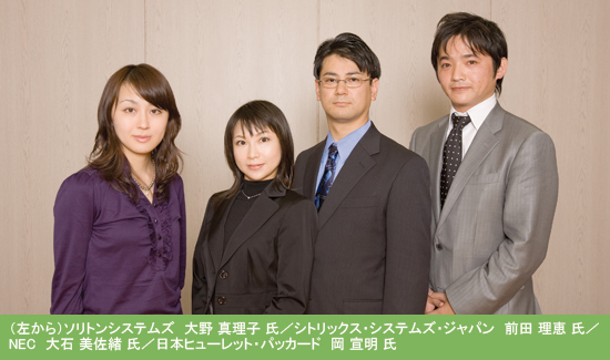 | 「シンクライアントに関する案件は増えていると実感しています。“NEC VirtualPCCenter”は、仮想化技術を活用しており、サーバーリソースを有効活用できるうえ、エネルギー効率が高く、運用・管理しやすいシンクライアントシステムです」(大石氏)。 NECは、ハードウェア/ソフトウェアに加え、システムインテグレーションも可能だ。つまり、導入・運用に至るまでのすべてをワンストップで提供できるベンダーということもできる。またソリトンシステムズの一次販売代理店という顔も持つ。 「ソリトンシステムズ様とは、お互いに評価環境を持ち合い製品の開発を進めています。情報交換も密で、お客様のニーズに応えるソリューションをいち早く提供できる体制を整えています。そのような体制があるからこそ、よりよいシンクライアントソリューションをお客様に届けられるのだと思います」(大石氏)。 | |