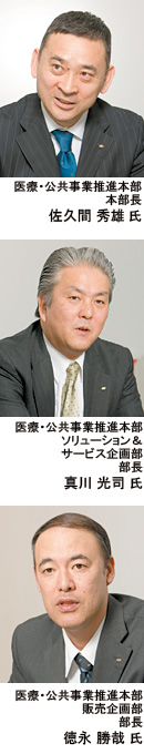 ヘルスケア分野について、「ビジネスモデルの中心となるソリューションは、病院内の情報化の中核をなす『電子カルテ/オーダリングシステム』です。看護、検査、調剤といった周辺システムについては、パートナーとの協業によりソリューションを提供しています。併せて、可用性の高いプラットフォームを実現するために、自社のプラットフォーム&サービス事業推進本部と連携して、最適なサービスレベルによる保守・運用支援および各種監視サービスなどによる地域医療サービスの構築など、サービスの拡充を目指しています」と、ヘルスケア分野のサービスの必要性を説くのは、真川ソリューション&サービス企画部長だ。