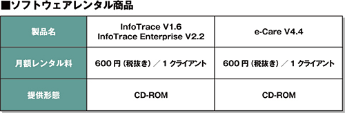 最近のユーザーニーズに適した提案 ソフトウェアレンタル第一弾「InfoTrace」と「e-Care」
