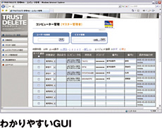 「トラストデリート」は、大規模導入時でも容易に導入できるように、CSVによるクライアント一括登録やサイレントインストールに対応している。クライアントの自動登録も可能だ。数万台規模のインストールでも、管理工数はほとんどかからず導入できる。すでにある大手金融会社では4000台以上が稼働しているとのことだ。