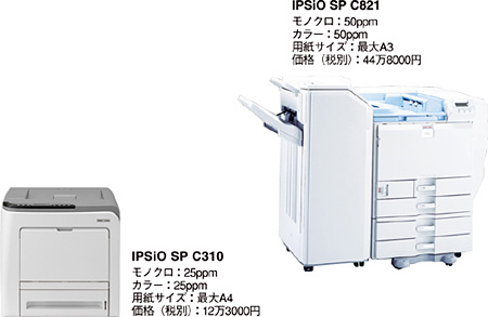 リコーは一般オフィス向けにデジタル複合機(MFP)を中心に、レーザープリンタやジェルジェット(ビジネスインクジェット)プリンタ、プロダクションプリンタまでの豊富なラインアップを提供している。今年度は、中核的な存在であるカラーレーザープリンタを一新した。A3機では、最上位機種のカラー毎分50枚機「IPSiO SP C821」とデスクトップ型の「IPSiO SP C721」が主力モデルとなる。さらに、2月には、A4機のシングル機「IPSiO SP C310」とA4MFP「IPSiO SP C301SF」を発売し、A4機のラインアップ拡充を図っている。09年のキーワードとして「環境(エコ)」と管理負荷低減を含めた「フロアーTCO削減」を掲げ、企業にシステム提供するSIerなどパートナーとの連携を深める。