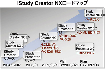 利用者に人気を博している「iStudy Creator NX」や簡単ビデオ教材作成ツール「iStudy Presenter」のコンテンツ作成機能を強化するほか、同社が主導し国内のLMSベンダーで共同で策定した研修コース情報に関する標準フォーマット「Learning─XML」を利用した機能を搭載し「iStudy Enterprise Server」自体も強化、SaaS型のLMS「iStudy OnDemand SaaS Edition」を地方展開するなど、「より簡単によりリッチな学習コンテンツを作成できるツールを提供し、これまで以上に幅広い層へ当社製品を売り込む」(松岡社長)としており、「iStudy Creator NX」を別のLMS提供ベンダーへOEM(相手先ブランドによる生産)供給することも視野に入れている。
