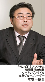 キリングループ内では、昨年9月末に新システムが稼働するまでの間、グループ各社が個別に導入したシステムを利用しており異なるドメイン間でのコンテンツ相互利用ができない状況だった。このほか、有料のASP型システムなどを利用していた。同システムが2009年末にサポート終了するのを機に、同年4月から「新システム導入」の検討を開始した。グループ全体の情報システムを担当するキリンビジネスシステムが中核となって「グループ各社が独自導入するのではなく、グループ全体で相互利用でき、コスト削減も実現できる社員研修用システムにする」(木場一成・情報技術統轄部ワーキングスタイル変革グループリーダー)ため、複数の条件をRFP(提案依頼書)に盛り込み、LMSを提供する6社に提案を依頼した。