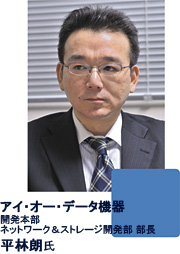 平林 アイ・オー・データ機器の平林です。当社の製品は、コンシューマ市場で多くのユーザー様を獲得していますが、SOHOや部門・部署単位でお使いいただけるローエンドの法人向けストレージ製品の分野も売上げの大きな割合を占めています。