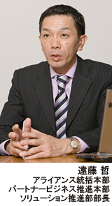 今回の戦略を指揮する日本オラクルの遠藤哲・アライアンス統括本部パートナービジネス推進本部ソリューション推進部部長は、今回の戦略について次のように語る。「ISVには競争力のある『売りだま』をつくってもらい、NTIには他にできない『サービスモデル』をつくってもらう。これに加え、SIerが『売りだま』と『サービスモデル』を使った案件づくりをすれば、各プレイヤーがWin-Winの関係を築ける。複雑化する企業システムを1社で賄うには限界がある。それぞれが協力関係を密にすることで市場を発掘することができる」。この先、FJBの成功例を基に、同じように中核となるSIerを3~4社開拓する計画。SIer個々に応じた製品や「ビジネスプラン」に、プレイヤーとしてISV、NTI及びディストリビュータなどを絡め、中堅市場における販売機会の拡大を狙う。