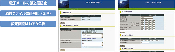 また、添付ファイルを暗号化する際にも気を配る。添付ファイルといっても、HTMLファイルや電子署名ファイルが添付される時もある。これらのファイルを暗号化してしまうと、受け手が電子メールを読めない場合がある。また、社内メールに関しては暗号化する必要のないものも多い。「メールロック」は、暗号化が必要な添付ファイルのみをきちんと暗号化できるよう設定が可能となっている。