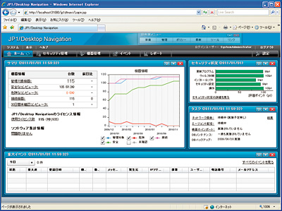 トップ画面では、PCの総数や接続端末数、安全状況、どのPCでどのようなイベントが発生したかなど、必要な情報をひと目で確認できる