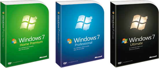 (左から)「Windows 7 HomePremium」 、「Windows 7 Professional」、「Windows 7 Ultimate」