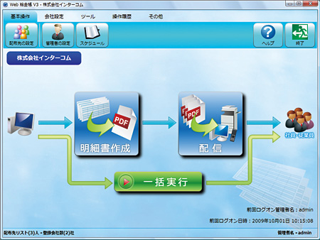 1、2クリックで給与明細書などを一斉に自動送付できる新バージョン「Web給金帳 V3」のトップ画面
