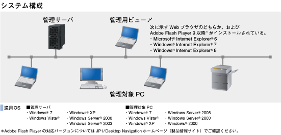 システム構成と価格体系。どちらもシンプルでユーザーからは「購入しやすい」、パートナーからは「売りやすい」と高い評価を得ている システム構成もシンプルで、管理サーバーと管理用PCを用意するだけ。特別な知識を有するシステムインテグレーションは発生しないので、導入障壁は低い。
