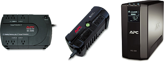 (左から)APC ES 500、SurgeArrest 雷ガードタップ+電源バックアップ、APC RS 550