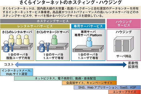 以前は中堅・中小企業(SMB)が、ウェブサイト運営やウェブメールなどの用途で利用することが多かったというホスティングサービス。ここにきて、インフラを自社保有するのが主流だった大企業への採用が進んでいるという。さくらインターネットの田中邦裕社長は「ホスティングはこれまでニッチな分野として、利用用途も限られていました。それが、クラウド・コンピューティングという大きなトレンドが広がったことで『利用する』という抵抗感が払拭されてきたこともあり、大企業に広がってきました。また、営業支援システムや、販売管理システムといった業務アプリケーションをSaaSで利用するために採用されるなど、その用途も広がりをみせています」と現状を話す。