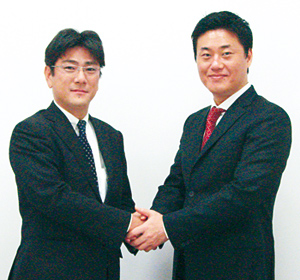 キヤノンITソリューションズの岡庭素之部長(左)と韓国・セキュアソフトの姜昇旭社長