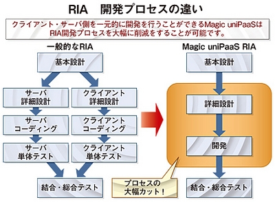 ただ、既存システムを生かしながらRIA環境に移行するのは、そう簡単ではない。その点、マジックソフトウェア・ジャパンが提供する「Magic uniPaaS」は、RIAとC/Sの両方を同時に統合開発することができ、短期間にウェブ化できるツールとして普及してきている。「Magic uniPaaS」は、競合他社の同等ツールに比べてRIA開発した後もメンテナンスしつつ進化させられるのが優位点だ。