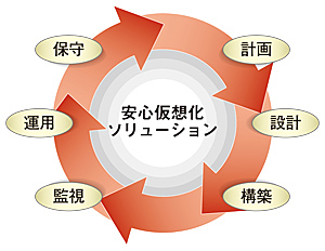 仮想化ソリューションは、どのITベンダーも今力を入れて拡販している分野だが、日立電サは競合が厳しいなかでも独自の強みをもち、他社とは一線を画している。それが、「仮想システムへの移行に関連する計画から、システムの設計・構築、そして稼働後の運用・保守サービスまでワンストップで手がけられること」(中津氏)である。