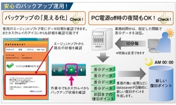 機能面でも、同価格クラスの製品とは思えない「バックアップ力」を備える。菊池社長によれば、「変更部分を常にVSSより自動同期させ、データロスを最小限にさせる。設定により、クラッシュ2分前まで差分を取得しスナップショットさせるため、完全復旧まで短時間ですむ。復旧させたいポイントが選択できる『世代管理』も可能だ」という。OS・設定・データを丸ごとバックアップするために、障害時にはディスクイメージを丸ごと復旧できる。復旧手順は、専任IT管理者でなくても「3ステップ」で自動復旧できる優れモノだ。