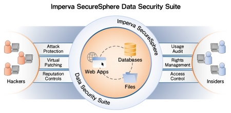 Imperva SecureSphere Data Security Suite SecureSphereの製品群によって、ウェブアプリケーション、データベースデータ、機密ファイルの三つを外部からの不正アクセスとインサイダーによる情報漏えいから保護。同時に効率的なコンプライアンス体制の確立に貢献する