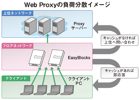 多数のクライアントPCを抱えるネットワークでは、多くのDNSの問い合わせが発生する。このリクエストすべてを上位ネットワークのDNSキャッシュサーバーだけで受けると負荷が集中することになる。最近では、回線をパンクさせないためのキャッシュとして、多くのWeb Proxyが必要だ。この場合もクライアント数が多いと、上位のWeb Proxyだけだと処理能力が超過しウェブアクセスに不具合が生じる。しかし、木村課長は「『EasyBlocks』をIAサーバーなどの代わりにエッジ側に設置すれば、簡単に運用できる。多拠点に展開する場合は、USBメモリから設定情報を反映できるので、手間を大きく省力化できる」と話す。同社では販売後の修理・問い合わせのための専用サポートサービスメニューを用意し、小規模から大規模までの案件に細かく対応している。
