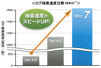 多くのパソコンを保有するユーザーは、ログの容量も膨大なので、検索時間が長くなる。そこで新版では、検索を高速化した。8700万件のログを対象とした同社の比較テストによると、「Ver.4.0」では検索に約33分を要していたのに対し、新版では約4分20秒で検索が完了する。従来から複数のログ種別の一括検索や、AND・OR検索、絞り込み検索などにも対応し、ログ検索の手間を削減してきたが、検索スピードを高めたことでさらに利便性が高まった。