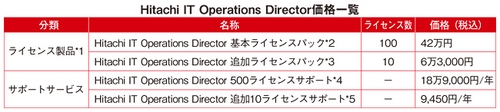 *4 Hitachi IT Operations Director 基本ライセンスパックごとに必要です。購入ライセンス数の合計が500までの場合、1本ご購入ください(500ライセンスまでは定額サポートとなります)。