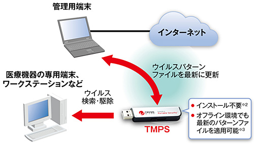 ● 医療機器に有効なUSBメモリ型ウイルス検索・駆除ツール「TMPS」(※1)